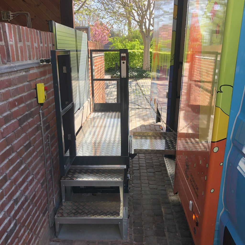 På billede 3 ses løftebordet anvendt som løfteplatform for bogbussen ved Roskilde bibliotek.
